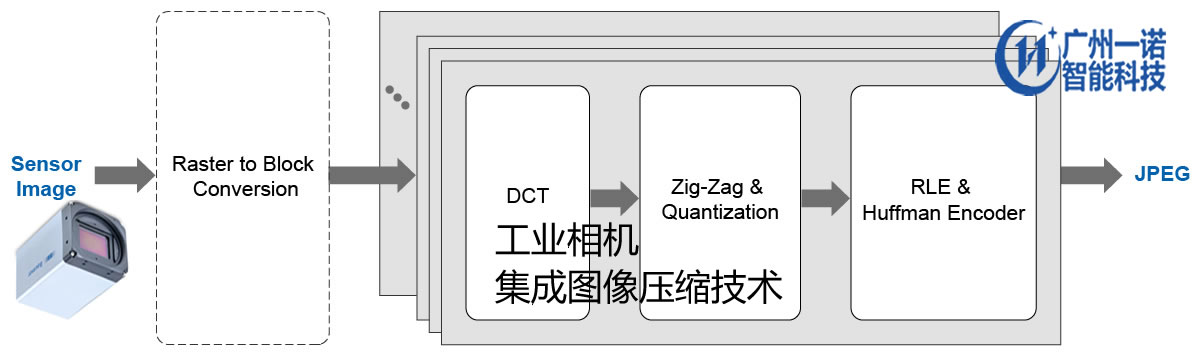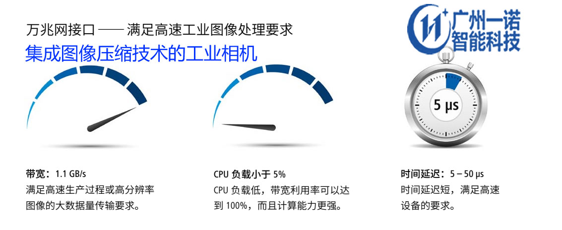 廣州一諾智能科技在視覺(jué)領(lǐng)域有多年的應(yīng)用經(jīng)驗(yàn)。目前市面上的CCD相機(jī)主要的圖片壓縮都是通過(guò)復(fù)雜的圖像壓縮算法對(duì)圖片進(jìn)行壓縮,有CPU負(fù)載大,占用帶寬和存儲(chǔ)空間大的缺點(diǎn)。Baumer堡盟集成JPEG圖像壓縮技術(shù)的VLXT.I.JP萬(wàn)兆網(wǎng)接口相機(jī),JPEG圖像壓縮技術(shù)集成在相機(jī)的FPGA模塊中,基于PC的圖像處理系統(tǒng)不需要再用復(fù)雜的圖像壓縮算法。這樣就可以將多臺(tái)相機(jī)通過(guò)一個(gè)交換機(jī)連接到一臺(tái)PC,實(shí)現(xiàn)高速的圖像處理及視覺(jué)檢測(cè)要求。